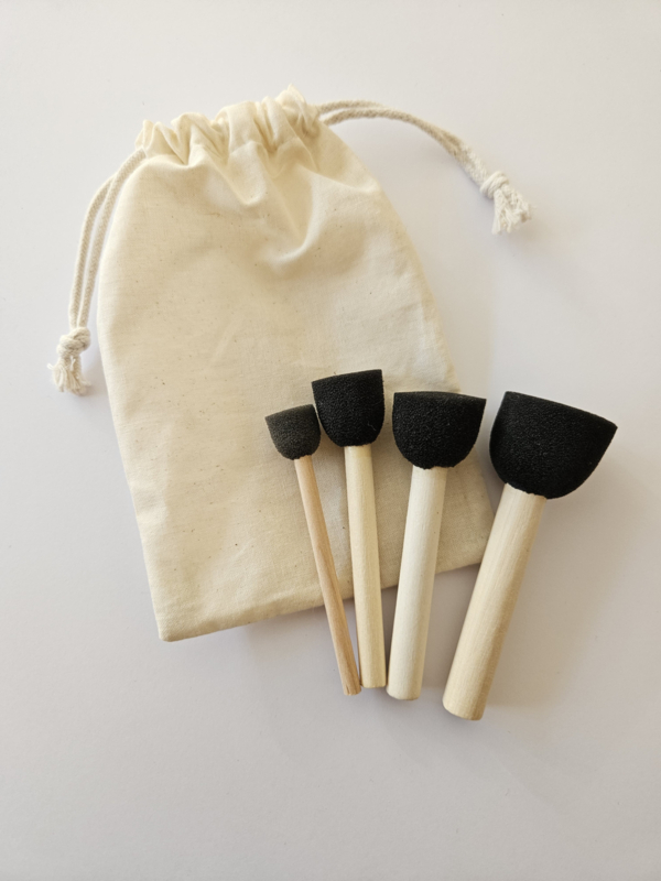 Set van 4 stuks Verfspons-kwastjes in een katoenen zakje.